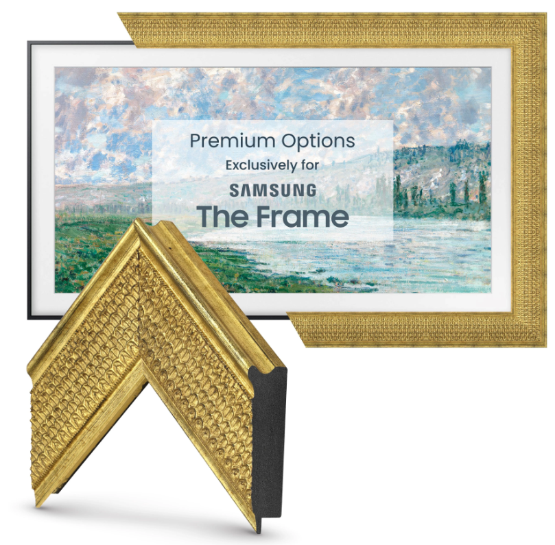 Each frame hooks onto the top of your Samsung Frame television and clips into place at the bottom to perfectly align with the edge of the TV screen. All frames can be easily installed by any consumer with no technical knowledge.