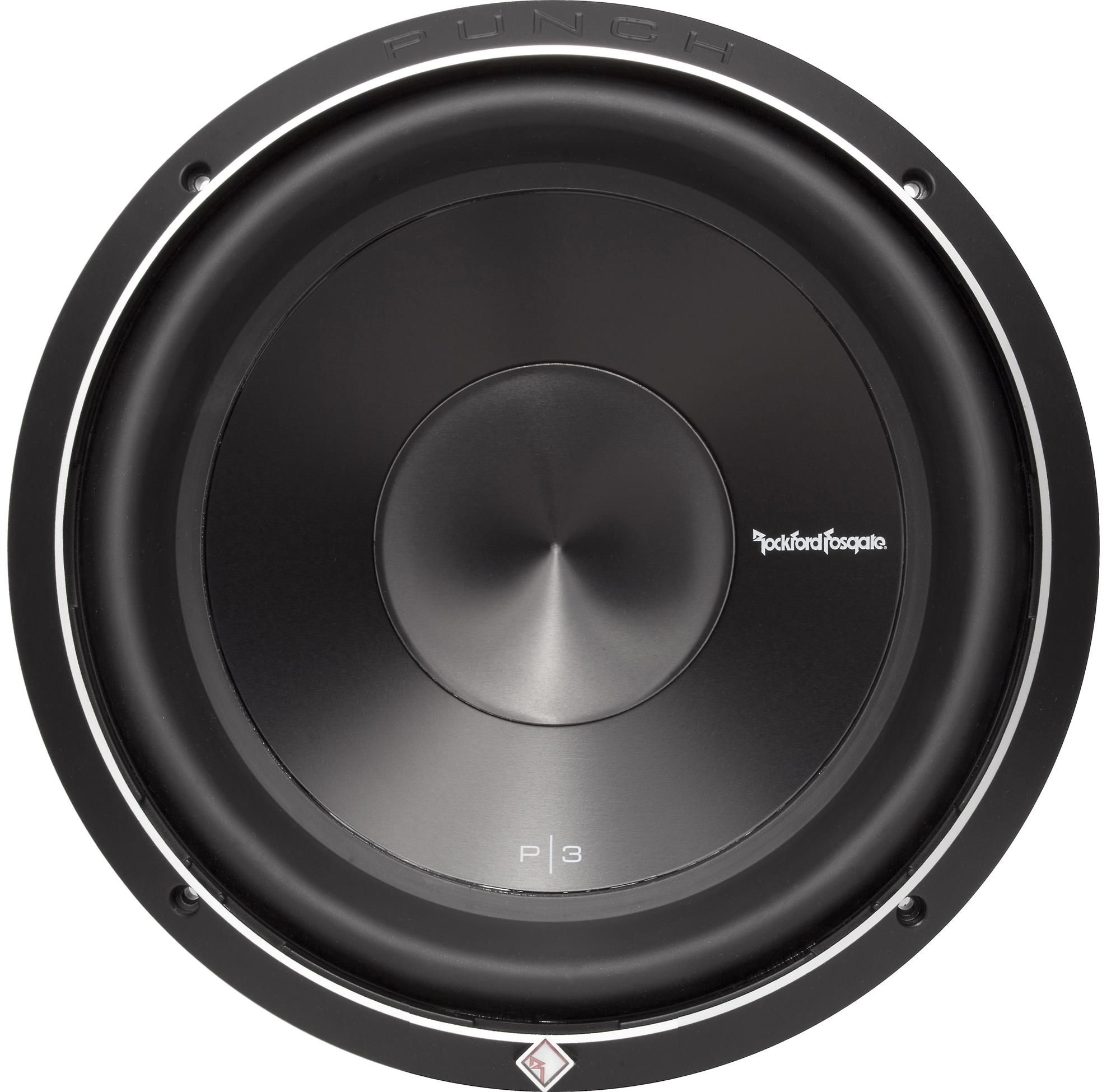 The P3D2-12 is the best performing Rockford Fosgate Punch series subwoofer. The P3 12” features Dual 2-Ohm voice coils, 600 Watts RMS of power handling, and accommodates a grille insert using the included cast aluminum trim ring.